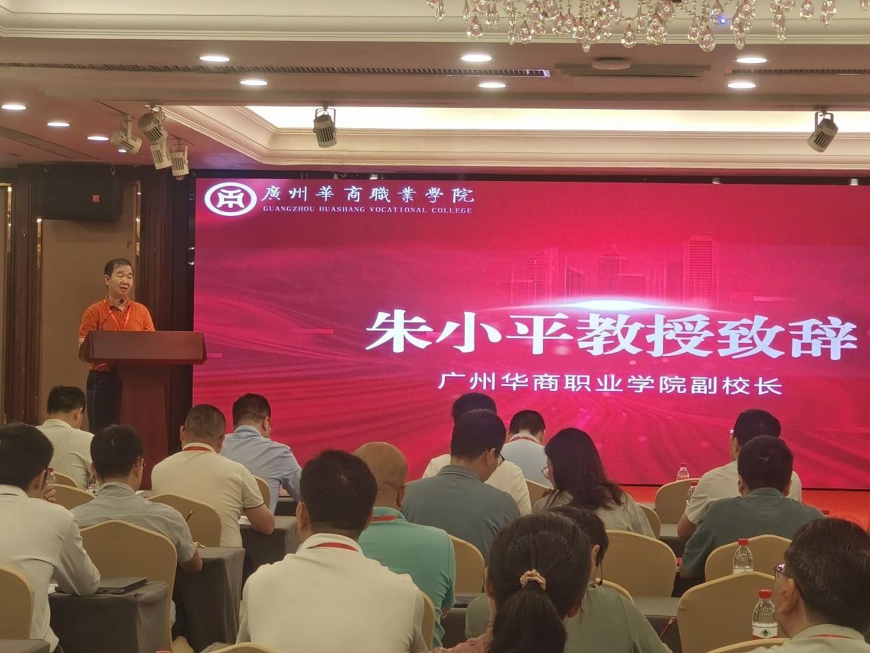 会上,广州华商职业学院副校长朱小平致贺词。作为民办院校代表,他自豪地强调,数学作为 “科学之母”,是职业教育高质量发展的 “基石” 与 “引擎”;同时详细介绍了该校作为民办院校,在办学历史积淀、多校区规模布局、优质师资组建及特色专业建设等方面的突出优势,分享了学校立足民办教育特色打造的数学教育模式。他进一步提出共建 “数学 + 产业” 资源库、共育 “双师型” 教师、共创评价新标准的倡议,明确表态学校将以民办院校的活力与创新力,全力助力广东职业教育高质量发展。