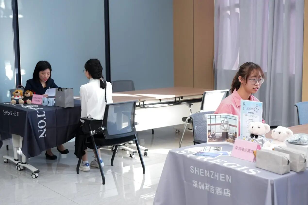 活动第二阶段,进行实习生招聘与万豪英才班的遴选面试。酒店管理与厨艺学院2023级毕业班学生前往酒店企业摊位,与7家万豪集团大湾区奢华品牌各酒店人力资源部同仁面对面交流,参与前厅接待、客房管理、烹饪、面点等实习岗位面试;2024级、2025级学生分别进入指定教室,参加“万豪英才班”遴选面试。面试官从职业素养、沟通能力、行业认知等维度进行综合评估,选拔具有潜力的未来酒店人。
