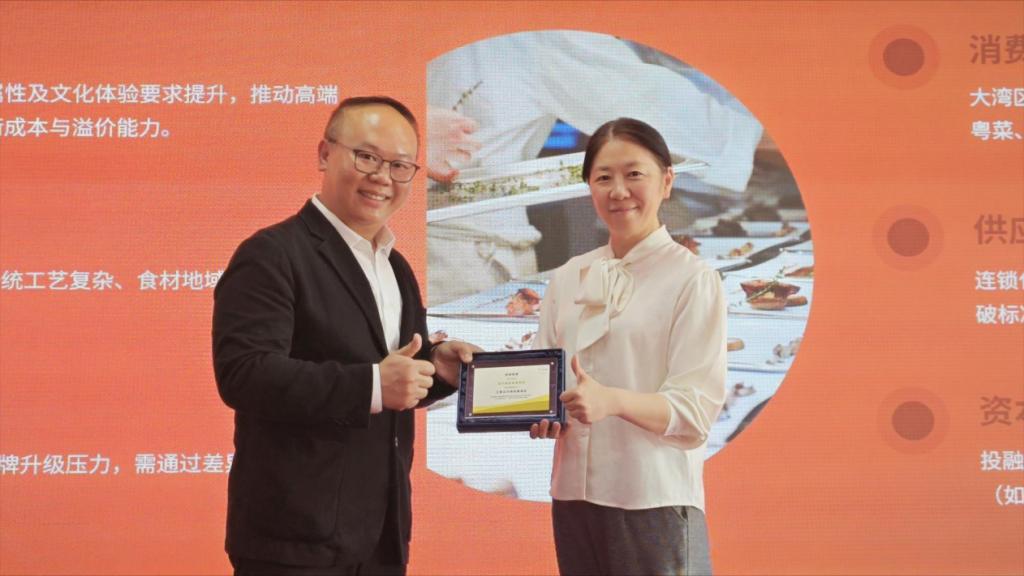 本次讲座由广州华商职业学院酒店管理与厨艺学院(粤菜学院)执行院长邓应华担任主讲。在专题分享环节,邓应华围绕“粤菜餐饮产业发展机遇与挑战分析”展开系统阐述。她指出,在大湾区融合发展的背景下,消费升级推动市场对高品质、文化体验型粤菜需求显著增长,为餐饮行业带来品牌化发展机遇;同时,供应链优化、连锁化经营模式创新及资源投入增加也为产业升级提供支持。邓应华也客观分析了行业面临的挑战,包括传统工艺传承与标准化之间的平衡、食材地域性限制、成本管控压力以及品牌差异化竞争等现实问题。