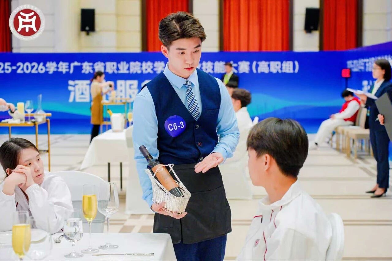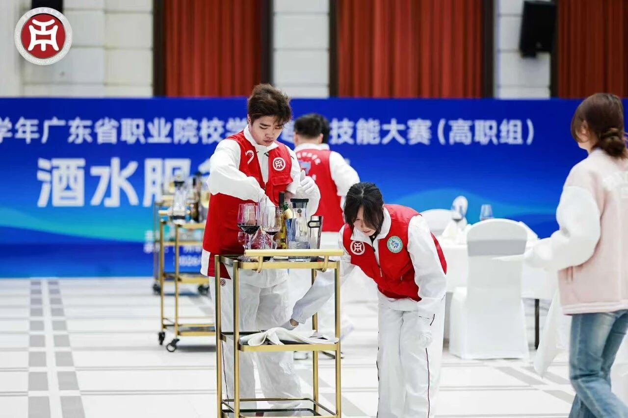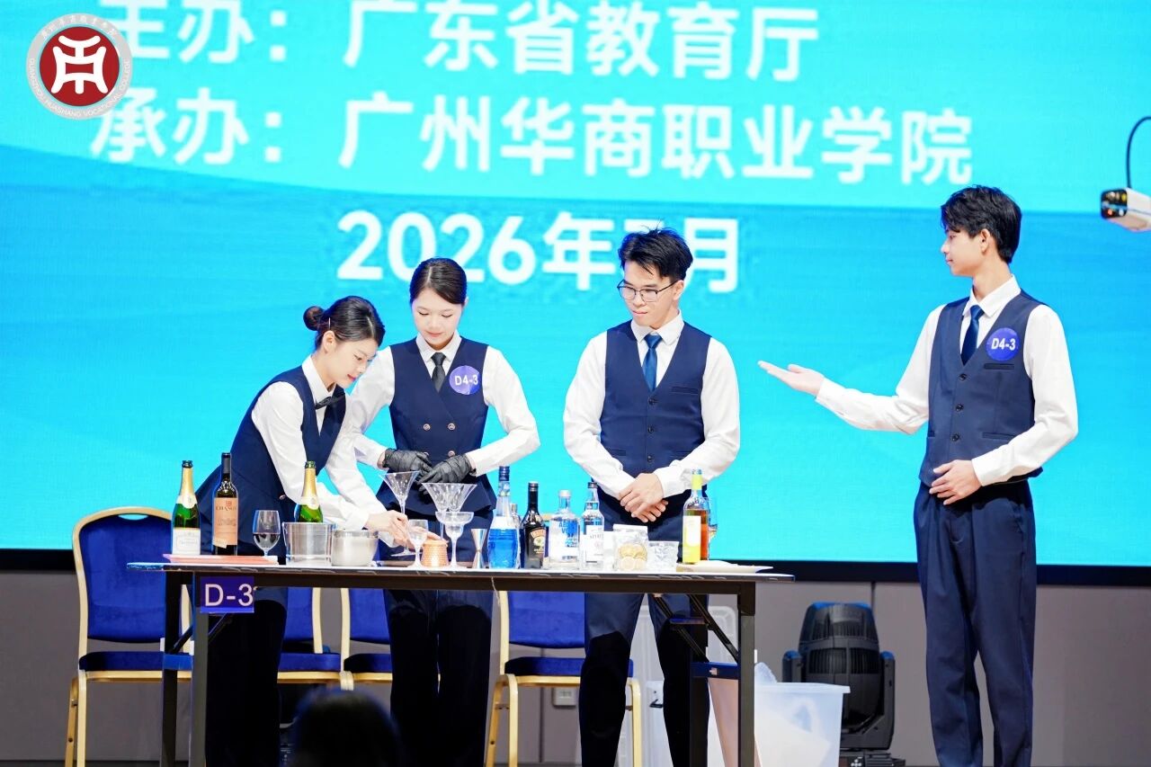 3月9日至11日,2025-2026学年广东省职业院校学生专业技能大赛(高职组)酒水服务赛项在广州华商职业学院举办。来自全省各职业院校27支参赛队伍、108名参赛选手一决高下,同台炫技比拼“酒水服务”水平。