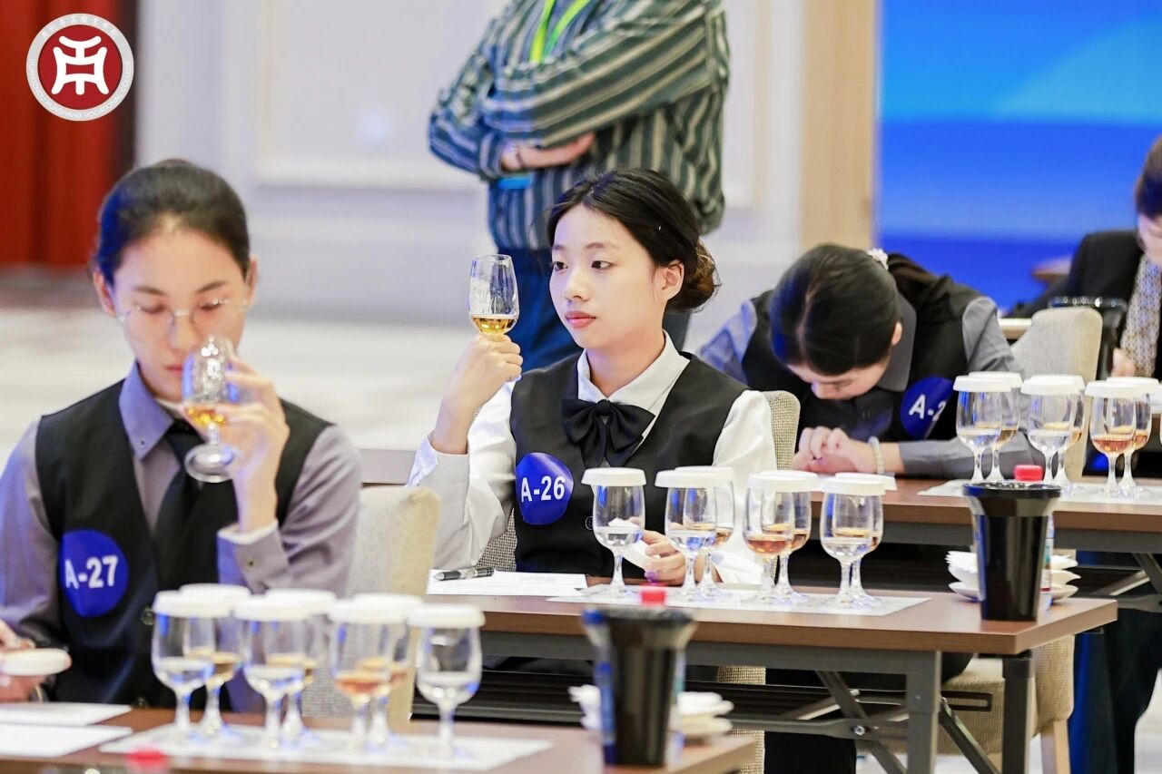 烈酒品鉴与营销活动方案设计项目,选手们需现场品鉴8款烈酒,并依据抽取的赛题场景,撰写针对葡萄酒节庆日的营销活动方案,体现其专业感知与策划能赛场直击。