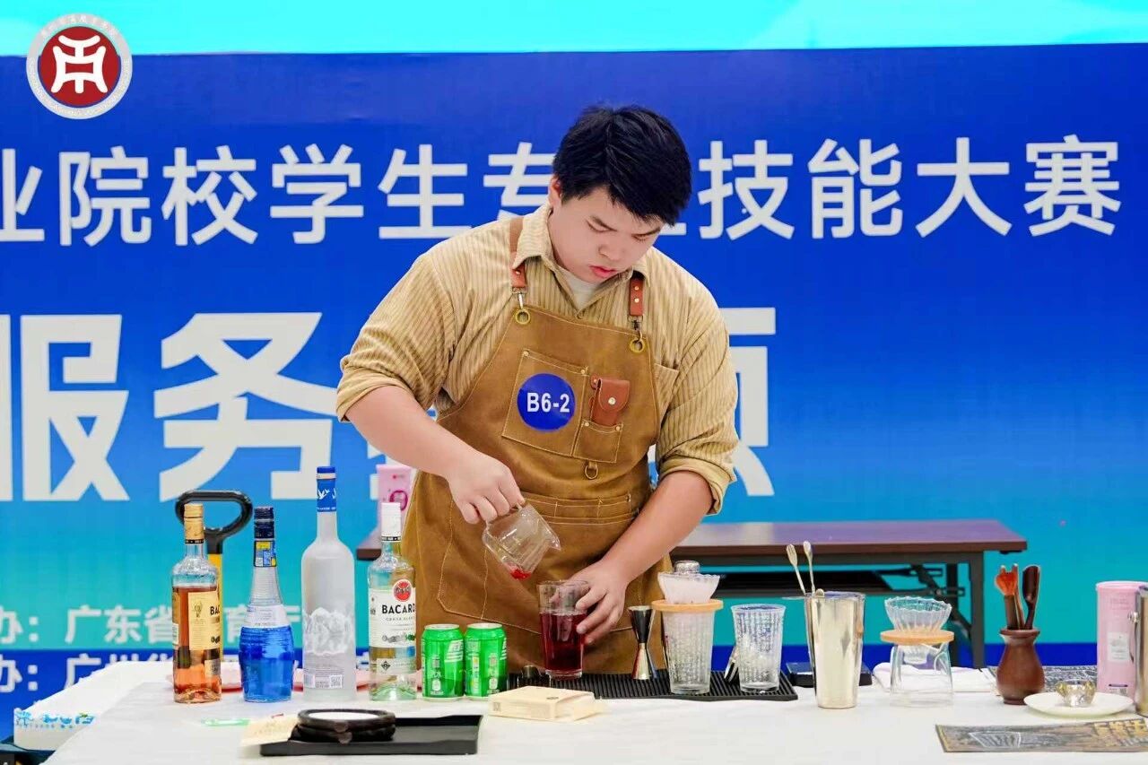 本次大赛由广东省教育厅主办,广州华商职业学院承办,立足高职旅游大类专业人才培养需求,搭建综合竞赛平台,彰显职业教育服务产业发展的价值。赛项由技能测试和综合展示两个模块组成,其中技能测试模块共有烈酒品鉴与营销活动方案设计、侍酒服务、鸡尾酒调制与服务三个项目,涵盖旅游大类专业酒水教学的核心技能、职业素养,强调工作过程的规范化、实境化、流程化、职业化,着重考核参赛选手在酒水服务过程中的综合素质及能力,紧密贴合粤港澳大湾区餐饮行业对高技能人才的实际需求。